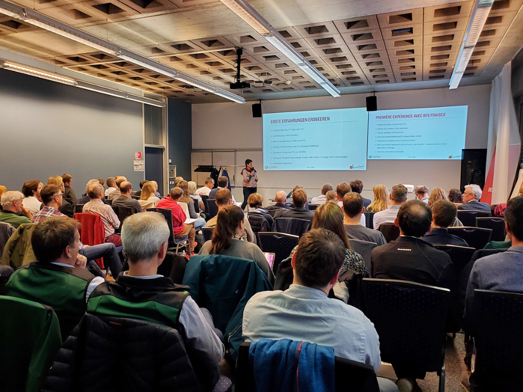 06.09.2023: Une nouvelle installation Agri-PV de 4000 m2, partenariat entre le canton du Valais, Insolight et Agroscope, est inaugurée à Conthey (VS). L’évaluation agronomique des cultures de fraises et de framboises prendra plusieurs années.